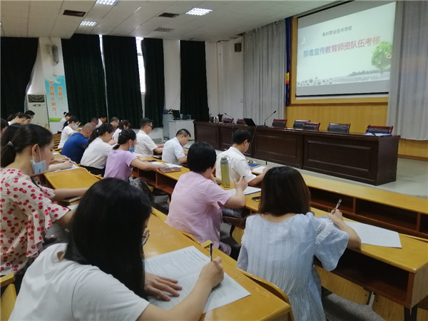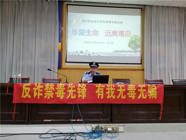 为深入开展禁毒宣传教育工作,坚决筑牢禁毒防线,全力打造无毒校园,2020年7月6日上午,陈村职校邀请了顺德区公安局陈村分局曹少强警官到学校开展了以“加强禁毒教育,构建无毒社会”为主题的禁毒知识讲座。全体教师参加了本次活动。