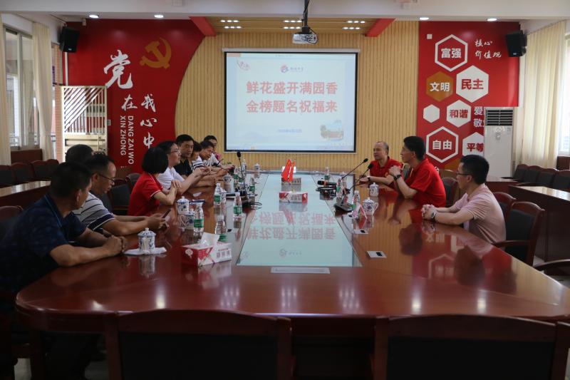 6月30日,艳阳高照,勒流中学的天空一片蔚蓝。在距离高考还有6天时间的紧要关头,顺德区教育局张毅副局长、区教育发展中心教研室余逸主任、邵永岳副主任莅临我校对高三教师进行慰问。我校刘毅校长、杨月桥副书记、廖令洁副校长、李国富副校长等行政热情地接待了张毅副局长一行。