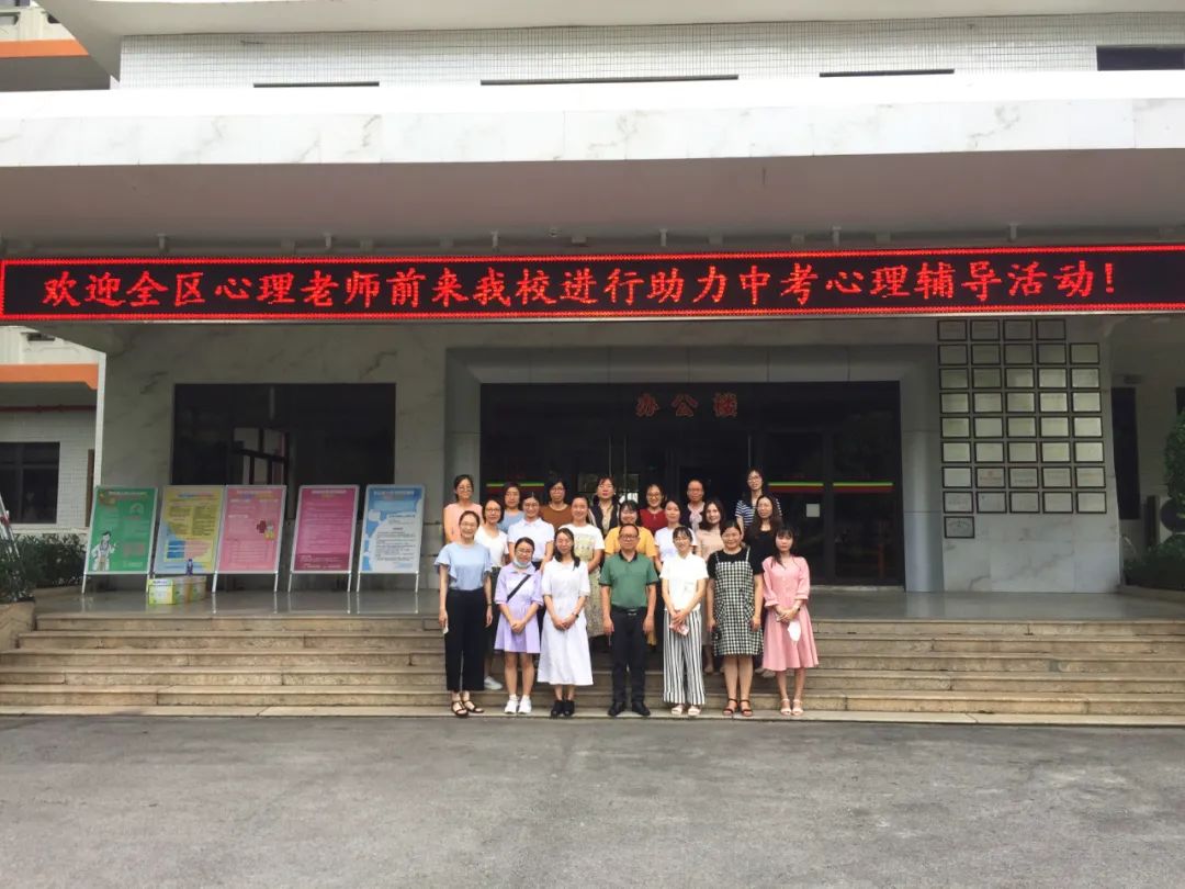 6月22日下午,区教育发展中心办公室主任、心理教育教研员陈萍带队到我校开展助力中考个体心理辅导活动。来自全区的18位心理老师共同为我校初三学子筑起守护理想的心理防线,给学生提供心理减负的技巧,分析造成心理压力的原因,缓解学生的考前压力。