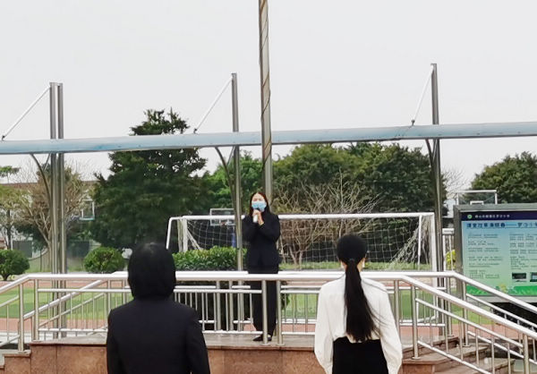 空旷的操场上,庄重如常。张永新校长和行政团队分别担任本次仪式的升旗手和护旗手,步伐整齐划一。