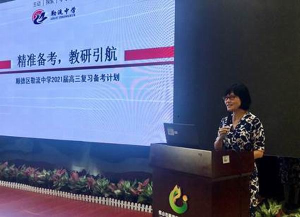 会议由三个议程组成。首先,由区教育发展中心教育教学研究室余逸主任作题为《迎新考开新局 创新绩》的专题发言,回顾了我区2020年高考取得了“高位提升,领跑佛山”的优异成绩,肯定了成绩背后全体教研员和学校领导老师的艰辛付出。他对2021届高三新高考备考进行了全面部署,并分享了各校高三备考计划的一些好做法。余主任勉励全体顺德高三人迎接新高考的挑战,抓住弯道超车的机遇,齐心协力、 力向前,续写顺德高考的新辉煌!