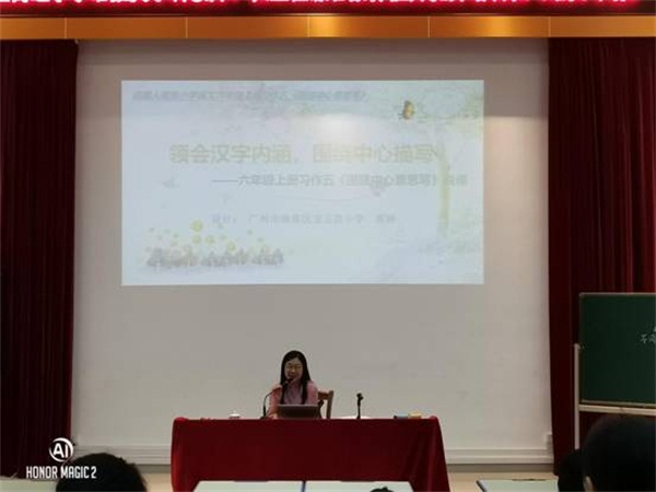 此次培训分为上下午两场。上午是由顺德区教育发展中心的教研员林雪玲老师给老师们带来精彩的讲座――《学科核心素养下小学语文教学评一体化的思考与实践》。林雪玲教研员从“树立正确的语文观”、“语文课堂教学探索”、“语文教学评价探索”三个方面展开培训,讲解了语文学科核心素养的含义和要求,要求教师应与时俱进,转变观念去理解语文综合效应,树立正确的语文观,同时通过各种实际课例,结合教材和目标,有针对性地讲解了如何进行“单元整体教学”,教会学生用方法、总结方法,使学生形成语文综合素养和能力。最后探讨了语文教学评价的依据和重要抓手,星空体育需要依据课标制定评价内容和评价标准,梳理语文要素,研究习题系统,思考命题指向和未来努力的方向。林老师相信在座的老师一定能“整体统筹 前后勾连 聚焦目标 层层推进”用好统编语文教材。