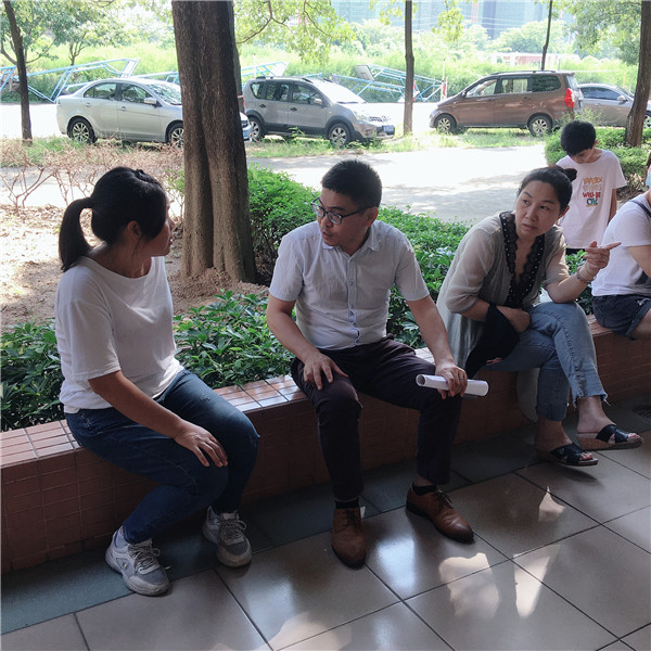 志愿者们提前熟悉班级位置,耐心指引位置和解答家长疑问