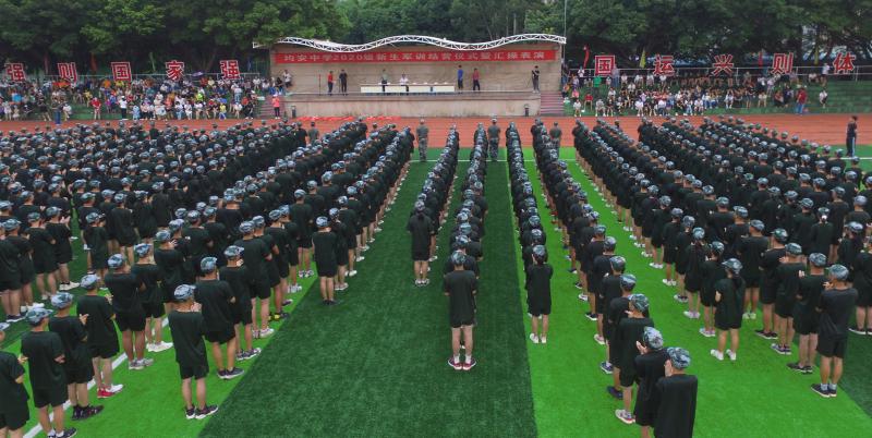 这一天,高一新生的家长们来见证结营仪式,看看自己孩子穿上军装的崭新面貌。