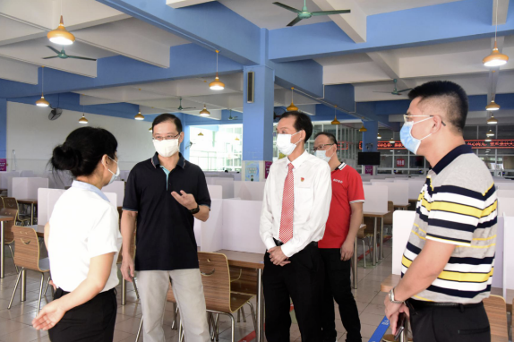2020年8月29日上午,顺德区教育局党组书记陈宇莹偕同区教育局办公室副主任罗泉良来到顺德华侨中学,对华侨中学校园疫情防控和新学期开学准备工作进行督查检查。学校党总支书记、校长吴剑平等行政人员陪同督导检查。