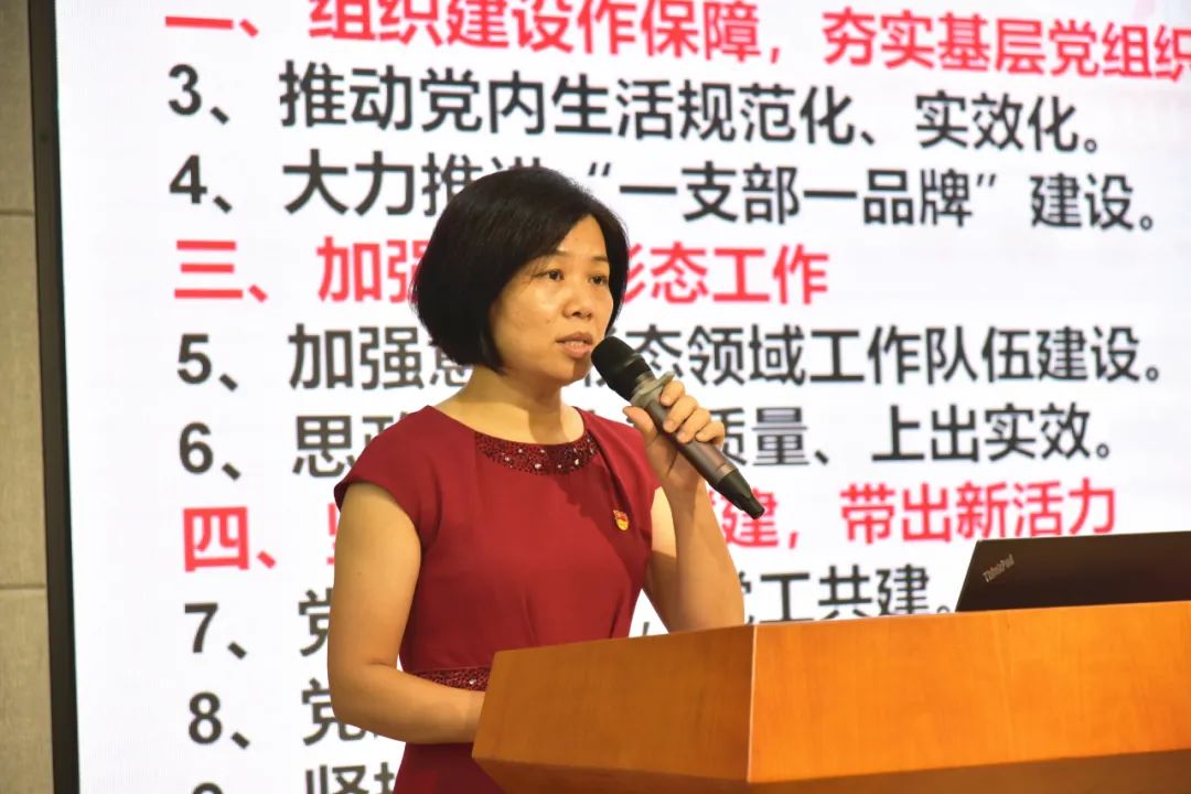 随后,顺德一中外国语学校党总支专职副书记刘婷解读本学期党建工作计划。刘副书记表示,在一中党委领导下,我校党总支要加强学习,以党建工作引领品牌学校创建工作,以态度引领、方向引领和行动引领,来加强组织建设和意识形态工作,党建带群建,带出新活力,夯实基层党组织根基,促进学校各项工作高位发展,与学生一起成长。