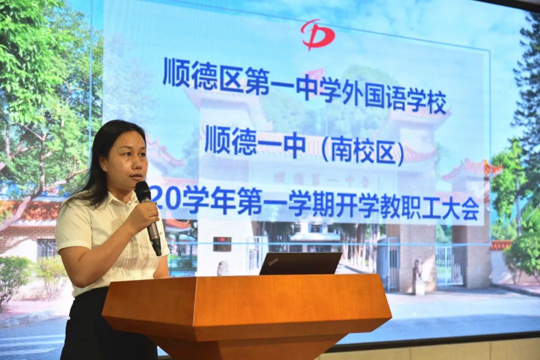 教师团队是学校发展的核心竞争力。李淑敏主任首先向全体教职工介绍本学期加入顺德一中外国语学校和顺德一中(南校区)大家庭的新教师,新学期,迎来新气象,新教师,造就新希望!