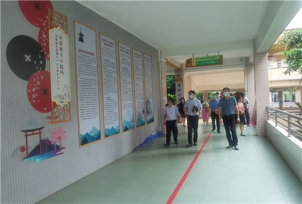 9月1日开学第一天,佛山市教育局党组成员、招生办主任邓锐昌一行在龙江镇党委副书记赖朝辉等领导的陪同下莅临我校开展调研指导工作。