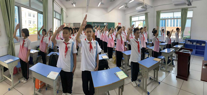开学典礼结束后,便回到教室开始课本的分发,看着崭新的散发着书香的课本,星空体育爱不释手,不由自主地翻起课文来看。领到课本后,星空体育跟着老师学习饭堂就餐指引,清晰的就餐指引,让星空体育很快熟悉饭堂吃饭的座位和流程。