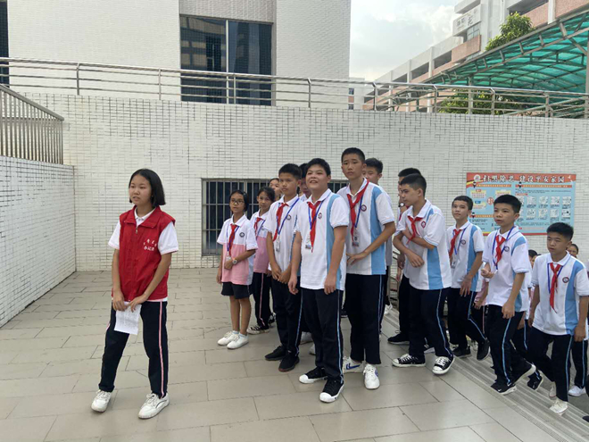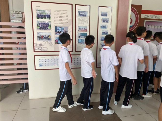 (初二的班长带领各班“传经送宝”,参观校园)