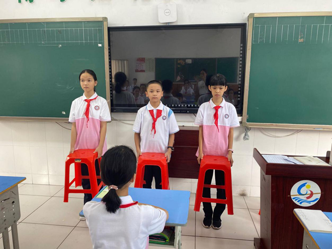 (集体进行日常行为规范训练)