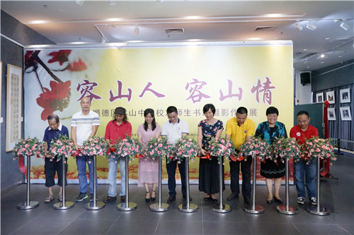 容桂街道党工委副书记、办事处主任欧胜军、容桂街道党工委副书记刘英华、顺德区教育局副局长冼弥冬、容桂街道宣传文体旅游办公室主任陈奋发、原广州美院版画系主任、广州美术学院教授李全民、容山中学校友联谊会荣誉会长李任贤、容山中学校友联谊会副会长谭耀基等领导、校友嘉宾出席了开幕式并为书画展作剪彩仪式。