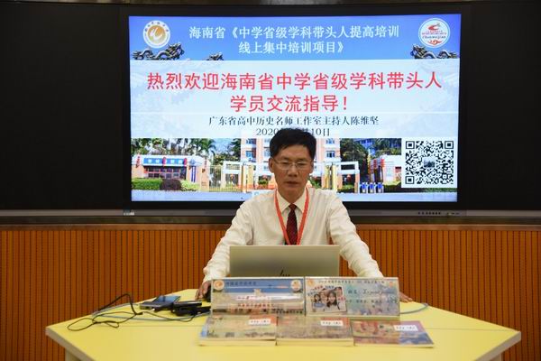 2020年10月10日上午9时,陈维坚老师受邀参与由海南师范大学继续教育学院主办、全国中小学教师继续教育网承办的中学省级学科带头人提高培训项目。参加本次线上培训项目的教师均是海南省2017―2021年度中学省级学科带头人,其中初中学科带头人22人,高中学科带头人47人。为帮助学员明确“凝练个人教学主张对专业成长的必要性”,广东省高中历史陈维坚名师工作室主持人、顺德区陈维坚特级教师工作室主持人――陈维坚老师在广东省高中历史陈维坚名师工作室以直播的形式作了以《名师教学主张自主凝练》为题的专题讲座。该讲座为此次培训的首场专家讲座。在两个半小时的讲座中,陈维坚老师倾囊相授为参培学员带来了实用且有益的教育教学建议,为广大参培学员提供了今后发展的思路和方向,也为本次线上培训项目打下了一个良好的基础。