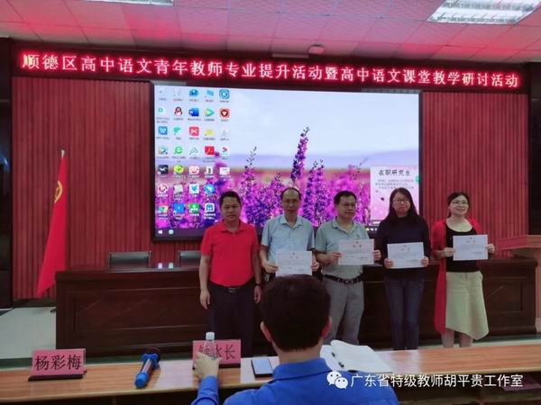 杏坛中学李锦辉副书记向主讲教师颁发了证书并合影