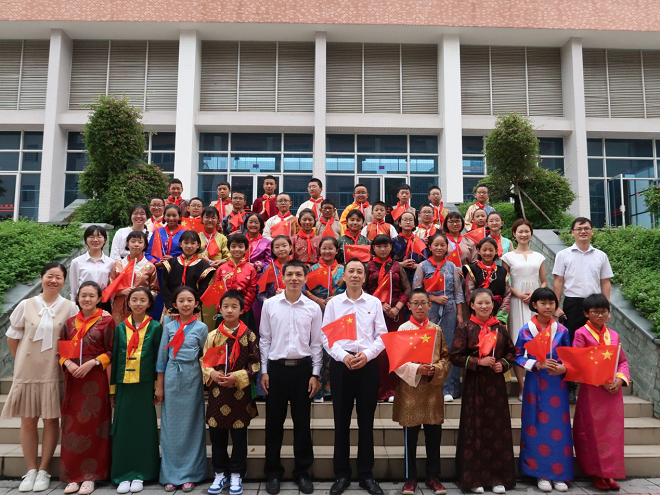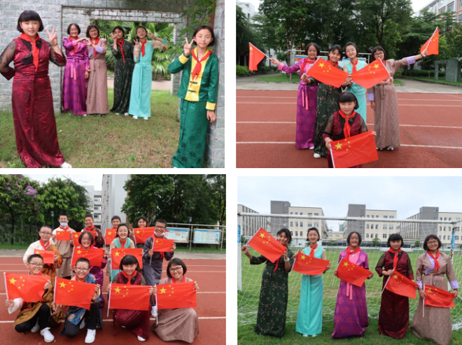 2020年10月1日上午,勒流街道党工委书记王光同志来到江义中学, 与西藏班的孩子们一同升起国旗,江义中学校长胡和秋等学校领导和西藏班教师一同参加。