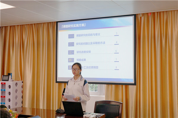 随后,由课题主持人从课题选择的背景和意义、研究问题与方向、研究方法、成员分工、研究方案及过程、课题可能遇到的困难及解决方法和预期成果等方面详细地进行报告。专家组听取汇报后对课题进行评议,赞扬中学生的课题创新精神,充分肯定课题选题的重要应用价值,同时从以人为本,人工智能应用等方面提出自己不同的见解,对课题组成员如何开展务实、有效、系统的课题研究提出了具体的建议与指导,希望课题组细化研究对象,聚焦问题,进一步优化课题研究。
