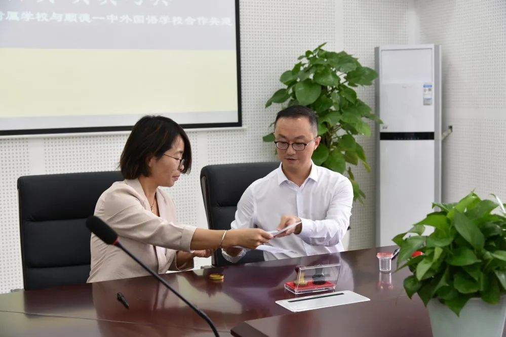 最后,双方学校签订合作协议正式缔结为姊妹学校,并就两校办学模式、家校合作、外语特色教学等方面进行了深入交流。