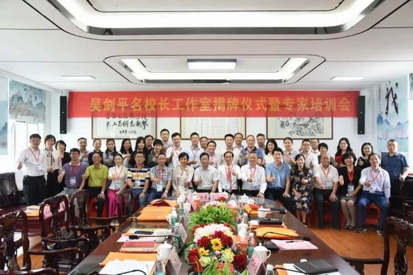 首先由吴剑平校长作为名校长工作室首席主持人发表讲话。吴校长简要介绍了顺德华侨中学近年来取得的成绩和名师工程的成果,介绍了工作室理念和目标愿景,表达了带领工作室全体同仁办好工作室,为顺德教育贡献力量的决心。