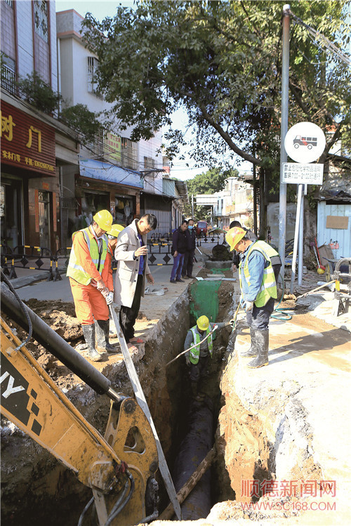 一边推进征地限期表决,一边规划提升社区配套,近几年,吕地社区环境呈现明显变化。记者采访当天,新齐宁路与吕地大涌交接处正在施工,加紧铺设污水管道。