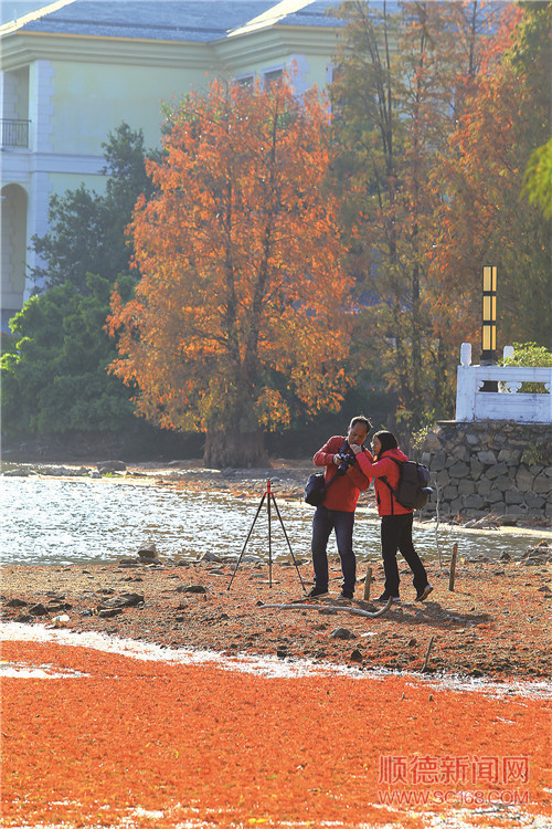 伦教河涌边成片金黄色水杉。