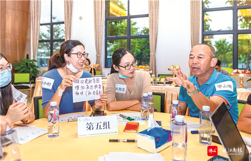 基金会理事在优化社会服务恳谈会上分享观点。/珠江商报记者何冠洪摄
