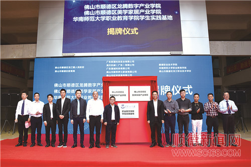 11月24日上午,顺德区龙腾数字产业学院、顺德区美学家居产业学院、华南师范大学职业教育学院学生实践基地揭牌仪式在龙江职业技术学校举行。/龙江宣办供图