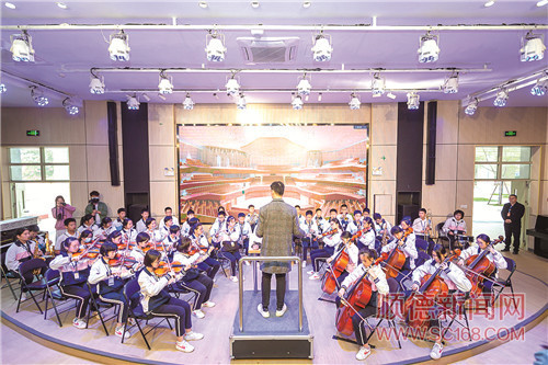 龙江外国语学校交响乐团在练习。/珠江商报记者林安迪摄