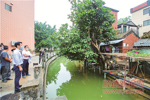 2020 年10 月29 日上午,顺德区和伦教街道在仕版开展联合执法行动,图为执法组检查了仕版辖区内的河涌两岸的违章搭建情况。/珠江商报资料图