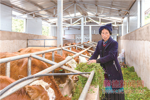 发展特色农业,把当地的生态优势转化为经济驱动力,这是顺德“造血式”帮扶的典型举措。图为金阳县依达乡瓦伍村种草养畜产业园,牧民正在喂养牛群。