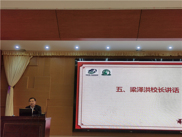 第三项议程,由梁泽洪校长致辞。梁校重点介绍了2020职业教育十大进展、2019年以来主要职业教育政策、未来职业教育发展趋势、顺德职业教育的两大变局等方面的情况,详细阐述了学校今后在制度建设、队伍建设、专业建设、文化建设、品牌建设等五个方面的工作设想和展望,激励全体教职工顺势而为,提质培优。接着,梁校长作陈村职校2020学年第一学期工作总结,汇报学校在专业建设、教学改革、校企合作、队伍建设、创新教育、人才培养等方面取得的优异成绩,充分体现了陈村职校全体师生在高质量发展路上 力同心、开拓进取、奋力前行的精神风貌。