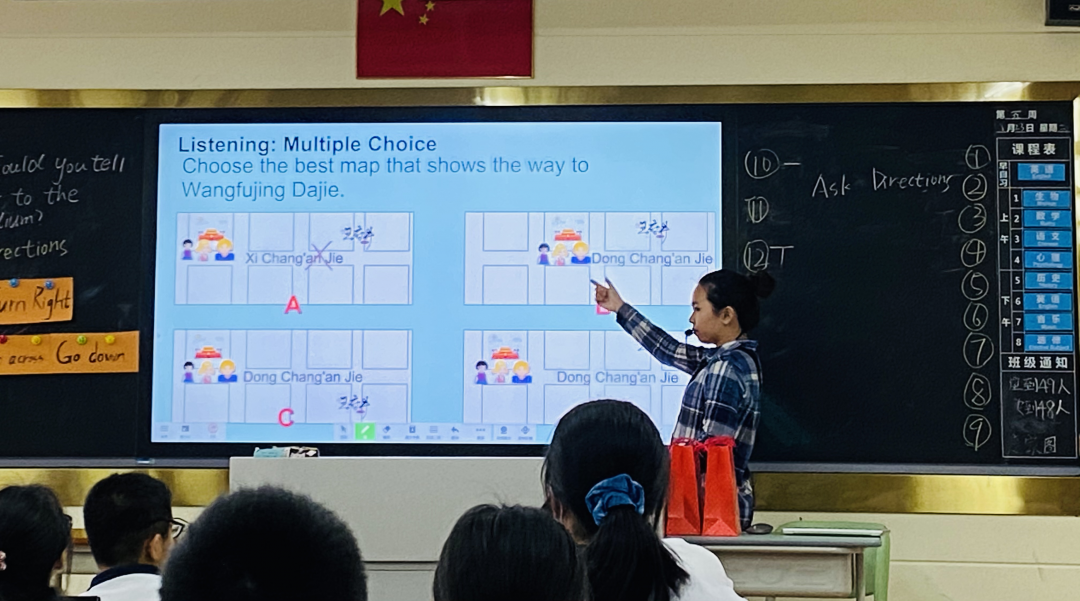 冯菲菲老师在初一年级开展了英语听说公开课,教学内容为七年级下册M6 Around town Unit 1 《Could you tell me how to get to the National Stadium》。