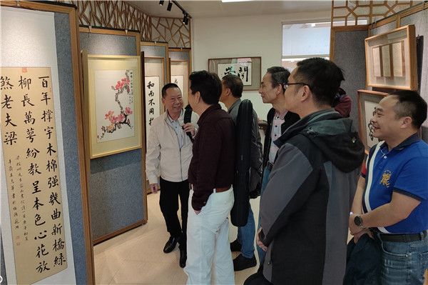 嘉宾们在我校美术老师的陪同下,一同参观了我校历届优秀名家校友师生书画摄影作品展,随后亲临风雨室活动现场,与我校师生一同即席挥毫,翰墨流韵。活动现场热闹非凡,我校部分热爱书法的教师和书法社的学生亦积极参与到其中,与书画名家交流学习,一同为现场师生带来了一场美学盛宴。