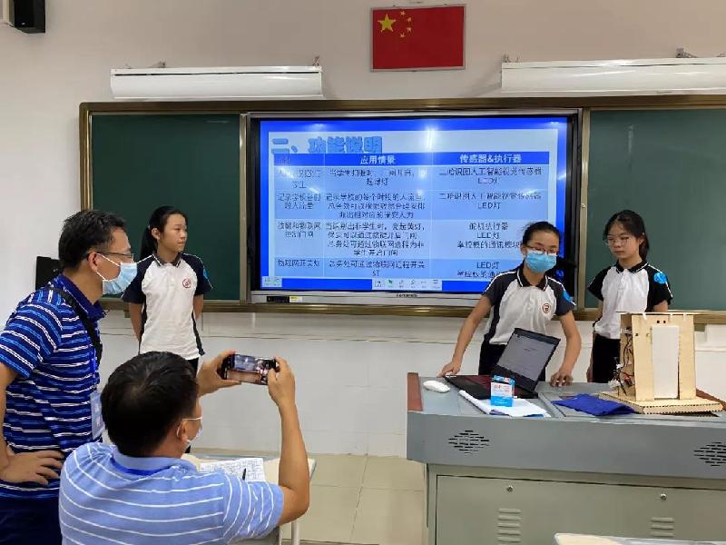 8月27-28日,顺德区第二十一届顺德区中小学电脑制作活动在龙江外国语学校举行。我校由信息科组的欧阳瑶瑶老师和欧昭旋老师带领五名学生参加比赛。其中六年级(1)班何梓萌、梁梓欣、胡靖韵同学参加创客项目比赛,获得小学组第1名;六级(1)班欧阳家铭、六年级(4)班欧阳海纳两位同学参加人工智能应用制作项目,获得小学组第2名。最终,两个项目均获得顺德区小学组一等奖,其中何梓萌同学在比赛过程中表现出色,将代表顺德区参加省赛。
