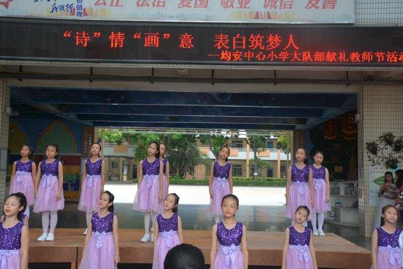 随后,少先队均安中心小学大队邱雅诗同学特发出倡议,号召大家尊师敬师,听从老师的教诲,学做优秀的少先队员。