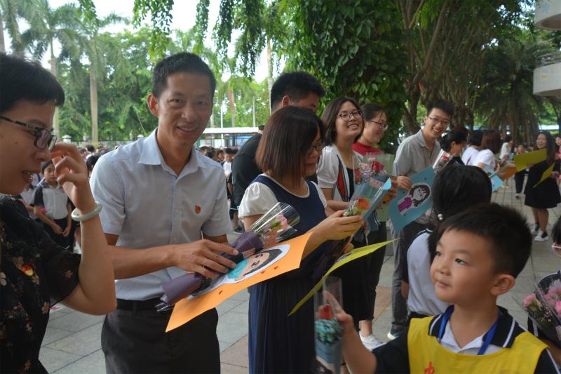 活动当天,全体师生汇集一堂,四年3班黄博文同学率先为老师们献上歌曲《老师的爱》,清润甘甜的歌声,像一股清泉,瞬间抓住了听众的心。