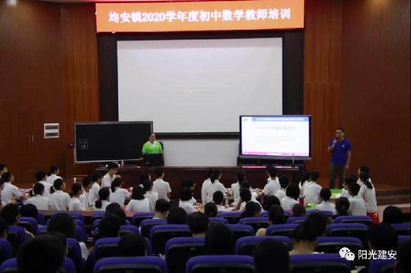 为贯彻落实教育高质量发展的精神,切实推进“壮腰工程”建设,着力提升初中教学与与备考质量,2020年9月17日上午,均安镇教育办在建安中学报告厅举办了初中数学教师培训活动。本次培训特邀广东省名教师工作室主持人、东莞市名师蔡映红给大家上了一节生动有趣的示范课:《第二章一元二次方程章节复习》。