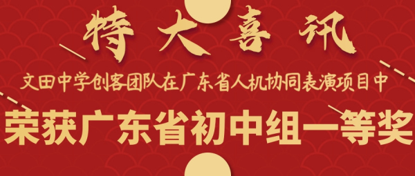 2020年9月23日,文田飞舞队代表顺德区参加广东省中小学劳动教育暨学生信息素养提升实践活动“人机协同团体表演”项目,荣获广东省一等奖!