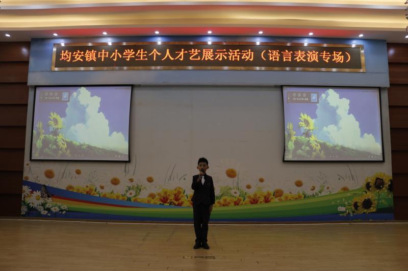12月2日下午,均安镇第三届中小学生个人才艺展示活动(语言表演)在文田中学紧张有序地进行着,均安中心小学六年1班邵秋桦、五年7班朱晋睿两位同学参加了此次比赛。