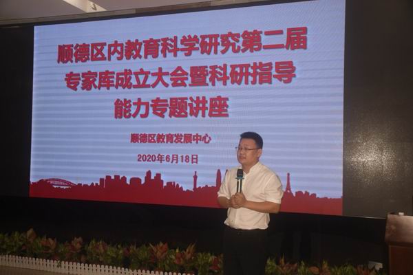 绿树浓荫夏日长,六月的盛夏点燃了顺德区教育工作者的科研热情。2020年6月18日上午,顺德区内教育科学研究第二届专家库成立大会暨科研指导能力专题讲座在区教育发展中心顺利举办,广东省教育研究院基础教育研究室副主任黄志红博士莅临现场指导,全区165位新组建的教育科研专家库成员参与并聆听了科研专题讲座,活动由区教育发展中心教科室副主任李远良主持。
