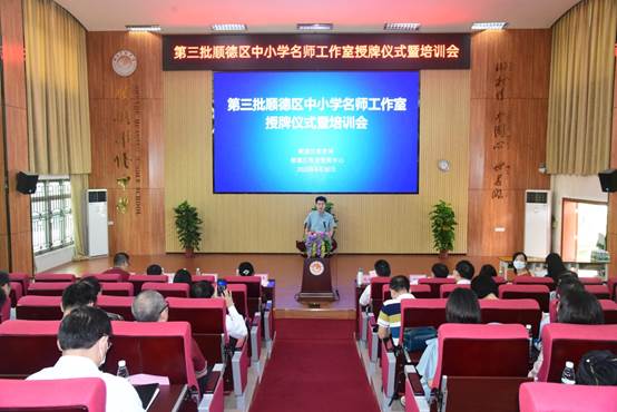 2020年6月30日,第三批顺德区中小学名师工作室授牌仪式暨培训会在顺德区华侨中学实验室一楼阶梯室隆重举行。广东省中小学教师培训专家工作室主持人、肇庆学院副院长肖起清教授,区教育局冼弥冬副局长,区教育局组织人事科刘进华科长、曾丽辉副科长,区教育发展中心何仪昌副书记,区教育发展中心教师发展研究室唐信焱主任、吴海坚副主任,区教育局、区教育发展中心相关领导和老师,以及我区第三批名师工作室首席主持人、项目主持人近140人参加了本次会议。会议由刘进华科长主持。