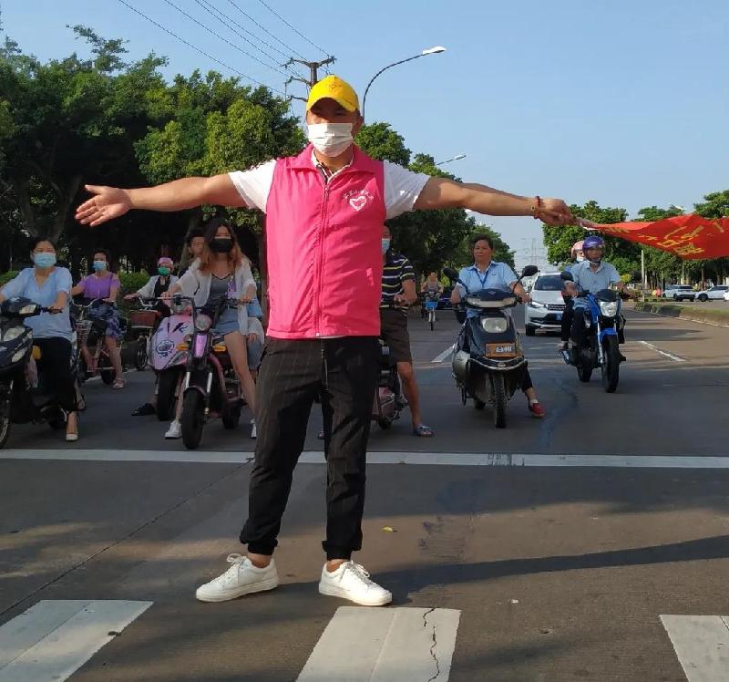 义工队一百多人,每周五天的坚守,架铁马、拉雪糕桶,站在斑马线的两端,站在车水马龙之间,这不是一尊肉体,而是一座城墙。最难难在盲区拐角――不听指挥的车辆强行将孩子放下;难在城光汇景的红绿灯处――有车辆不顾绿灯强行通过。义工朋友义无反顾,交通管理红旗一甩起,小小的身躯立出去。守卫着容里小学全校师生的安全。