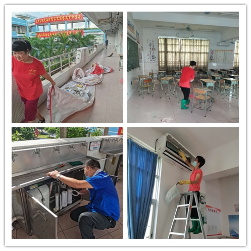 在新高三回校的路途上,有这样一群默默无闻,不为人知的后勤团队,他们在正式开学前抓紧时间对高三楼的饮水机,电线,以及各个班级的空调等设备及生活必需品进行检修,只为高三学子回校后,在学习生活上有一个最稳定可靠的保障。