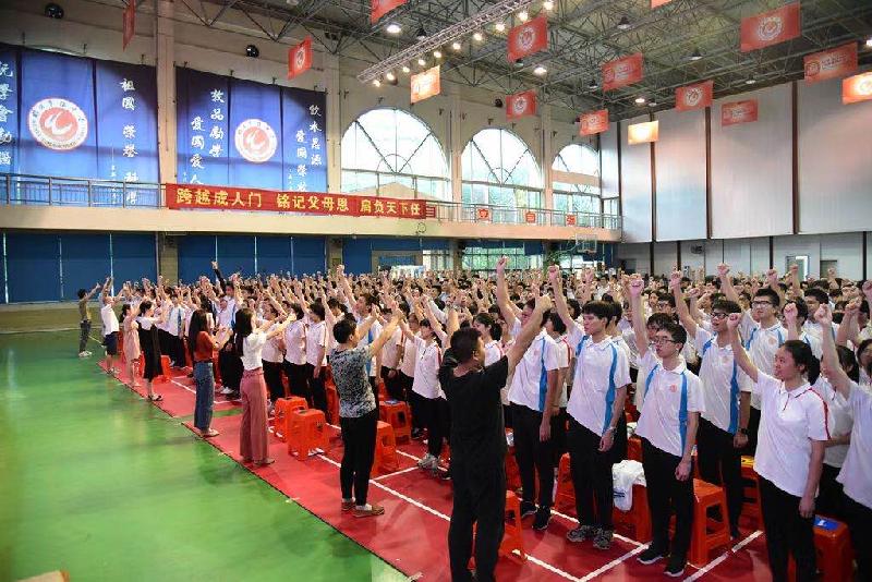2020年8月16日下午4:00,顺德华侨中学在体育馆开展2020届高三高考总动员励志演讲会。活动邀请到著名青年励志演说家杨青松先生,从培养习惯、感恩师长、自信拼搏三方面进行演说,为2020届的侨中高三同学加油鼓劲,助力同学们携书剑路不茫,携手乘帆远航。
