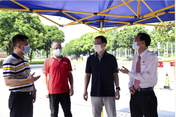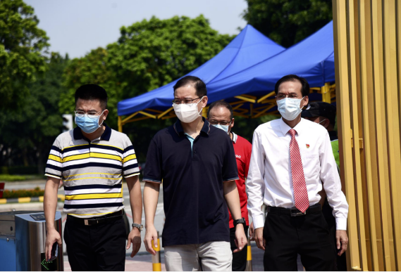 2020年8月29日上午,顺德区教育局党组书记陈宇莹偕同区教育局办公室副主任罗泉良来到顺德华侨中学,对华侨中学校园疫情防控和新学期开学准备工作进行督查检查。学校党总支书记、校长吴剑平等行政人员陪同督导检查。