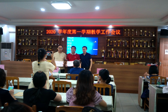 会议首先进行了简单而隆重的第二届育美名师颁发证书仪式,接着欧阳琳理事长进行2019学年度第二学期教学质量分析,之后上佳市小学以学校层面,重点介绍“如何寻找突破口,全面提升教学质量”;容桂小学重点介绍了“如何确保教学质量稳定发展”。在会上,语数英三门学科教师代表们对上学期期末的学生学业成绩进行了详尽的分析,对其中的成绩和不足做了思考,并明确提出了今后教学工作的方向,如语文老师在今后的语文教学中要立足课内,延伸课外;数学要从基础入手,加强练习,注重渗透。同时代表老师们都重点介绍应如何提升学生的学习效果,提高教学质量。