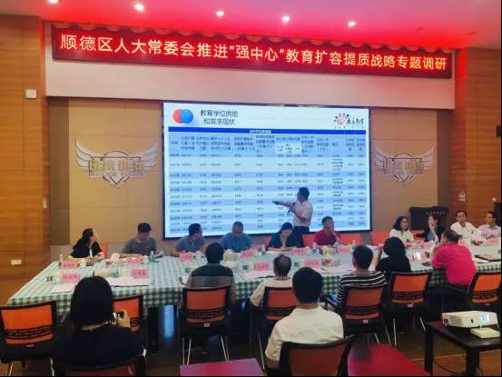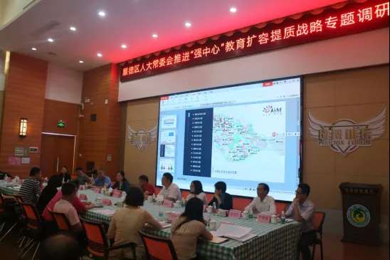 随后,何允唐主任在凤翔小学多媒体室主持召开了教育扩容提质战略专题调研会议,伍委员以“加快扩容提质步伐,助推教育高质量发展”为主题,从中心城区基础教育学位供给和需求现状及预测分析、中心城区基础教育学位规划布局现状以及布局优化分析、中心城区基础教育学校扩容改扩建情况分析、中心城区教育体制机制改革情况四个方面做了全面、深入、翔实的汇报,以促进顺德中心城区教育布局优化、学校扩容提质、教育改革深化发展,打造“强中心”教育发展高地,推动全区“强中心”战略实施。紧接着,区教育局罗劲柏副局长、华侨中学吴剑平校长、罗定邦中学熊文华校长分别就大良实验中学、华侨中学、罗定邦中学的扩容提质工作做了全面汇报,并提出了工作推进中的困惑。