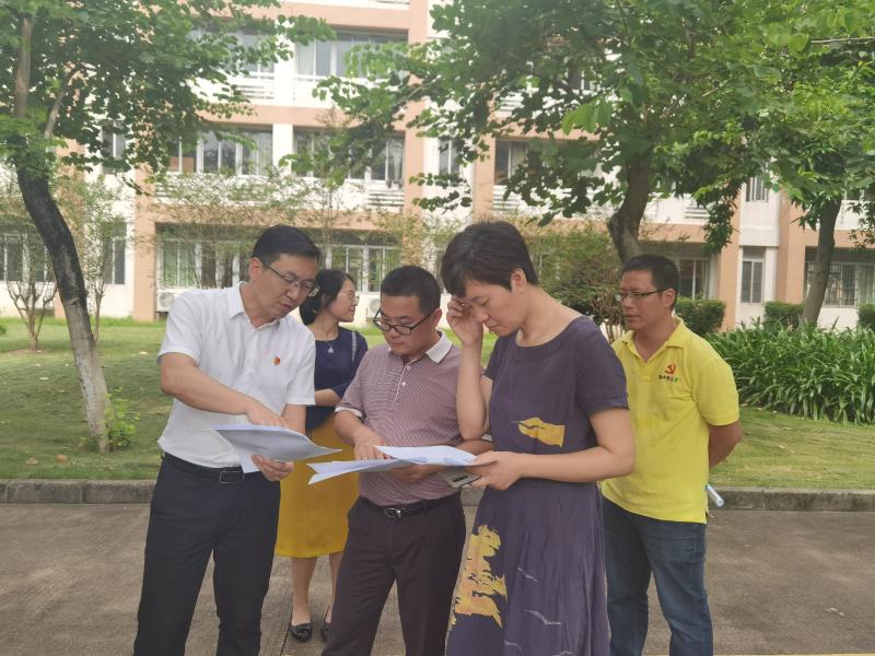 在视察中,蔡副区长一行人和我校行政就相关建设工程进行了深入的交流。