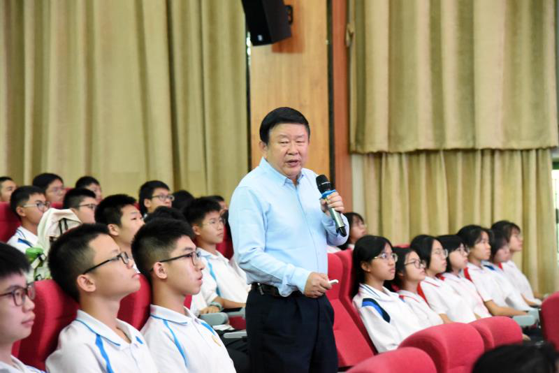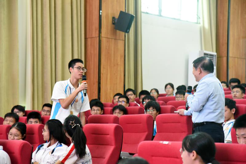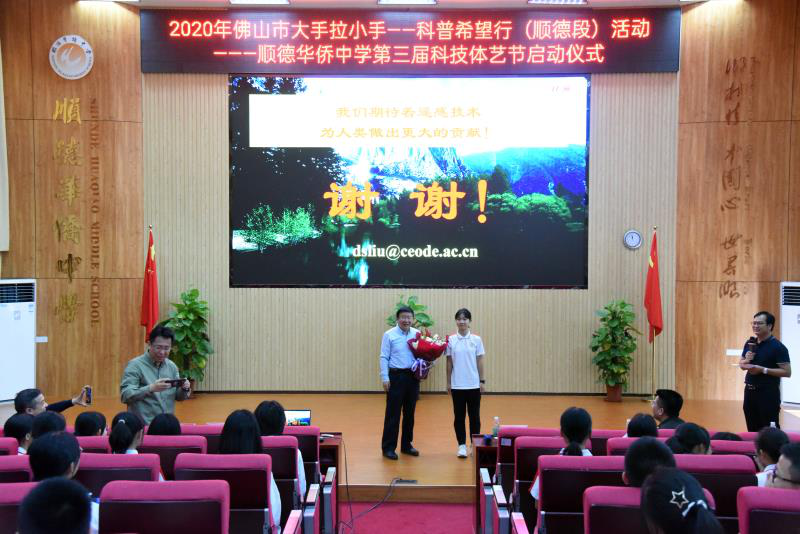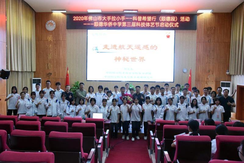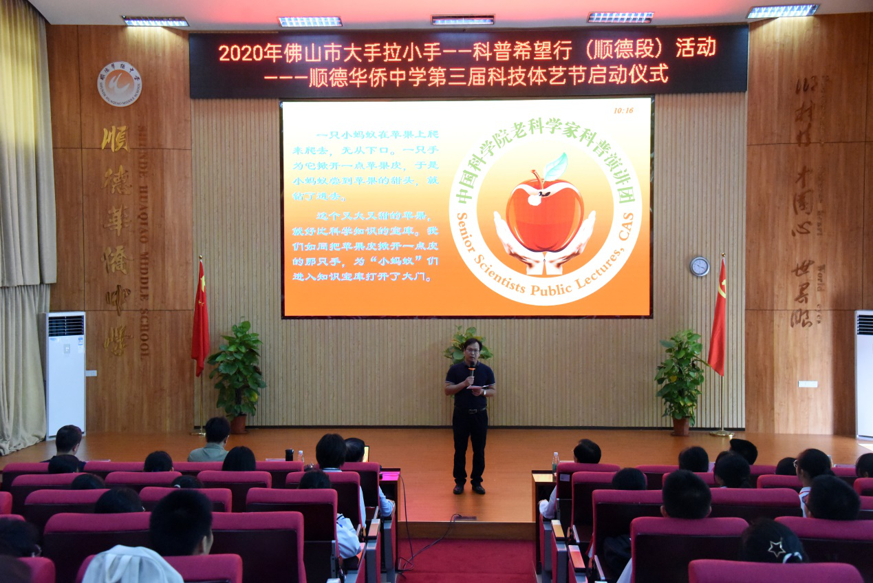 10月14日,2020年佛山市“大手拉小手――科普希望行”活动在顺德华侨中学举行。该活动系由佛山市科学技术协会、顺德区科学技术协会主办,邀请中国科学院老科学家科普演讲团的科学家进行科普演讲。14日上午,中国科学院科学家刘定生教授、佛山科协李政军主任、顺德区科学黄剑亮主任一同走进顺德华侨中学校园,为我校高一学生带来了一场精彩纷呈的科学讲座,为学生们开启了一扇更广阔的科学之门。