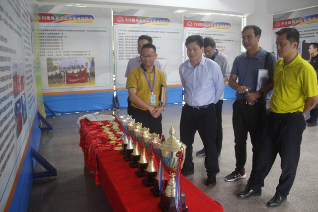 听完汇报后,调研组一行参观了学校跳绳队成绩展示厅,对我校跳绳队所取得的成绩赞不绝口。随后又到体育馆现场观摩了跳绳队的训练和表演,领导们对跳绳队精彩的、冠绝世界的表演纷纷竖起了大拇指。陈健生处长希望跳绳队的全体教练员和运动员:第一,要全力以赴,科学训练,刻苦训练;第二,要注意保护好自己,尽量减少伤病;第三,要奋勇拼搏,百尺竿头更进一步,努力为学校争荣、为广东争光。他还与全体教练员和运动员合影留念。