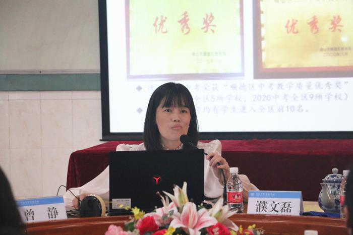 随后,曾静副校长结合近两年中考成绩,从指导思想、中考目标、重点工作措施三方面进行了中考备考经验分享。